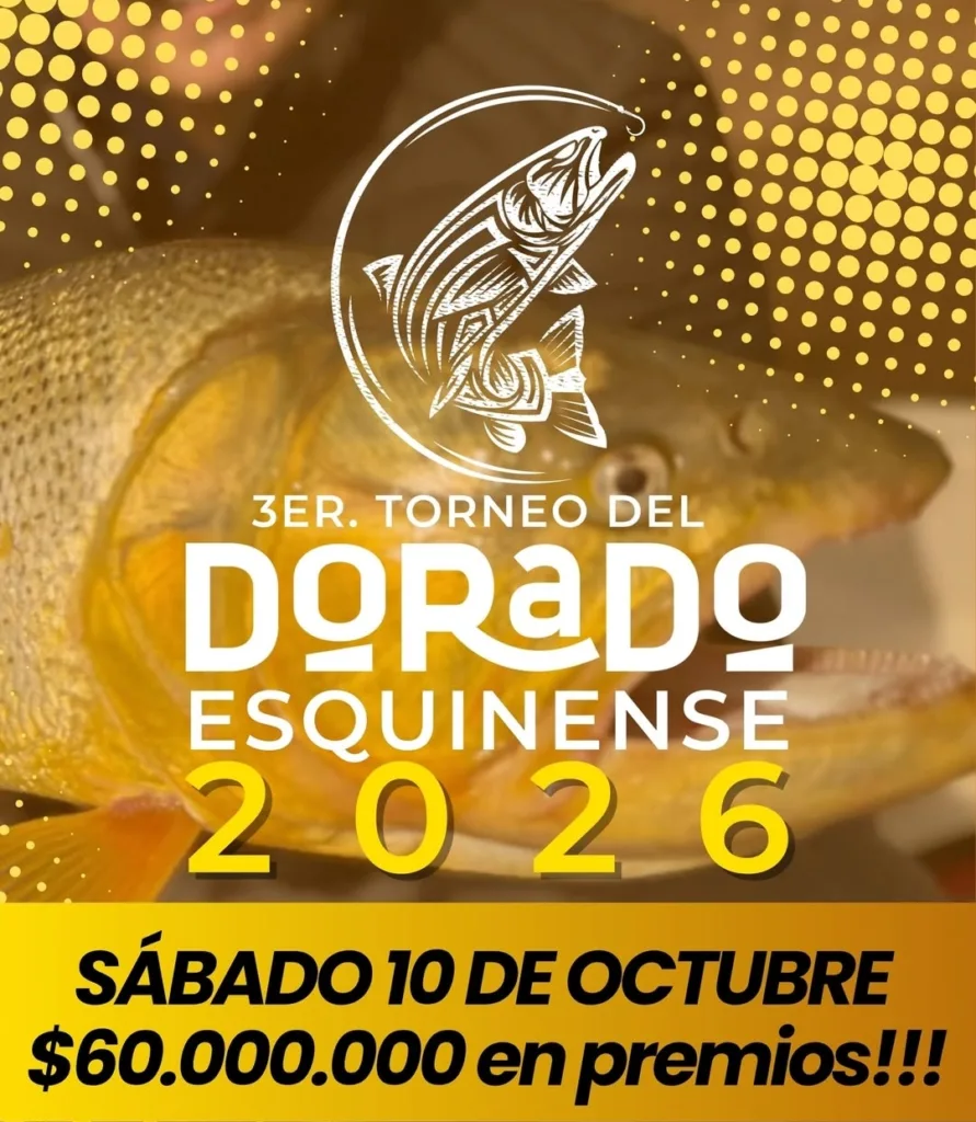 La 3ª Fiesta del Dorado Esquinense 2026 ya tiene fecha y promete convertirse en uno de los eventos más convocantes del calendario local. Desde la organización confirmaron que el certamen se realizará el sábado 10 de octubre y contará con más de 60 millones de pesos en premios.