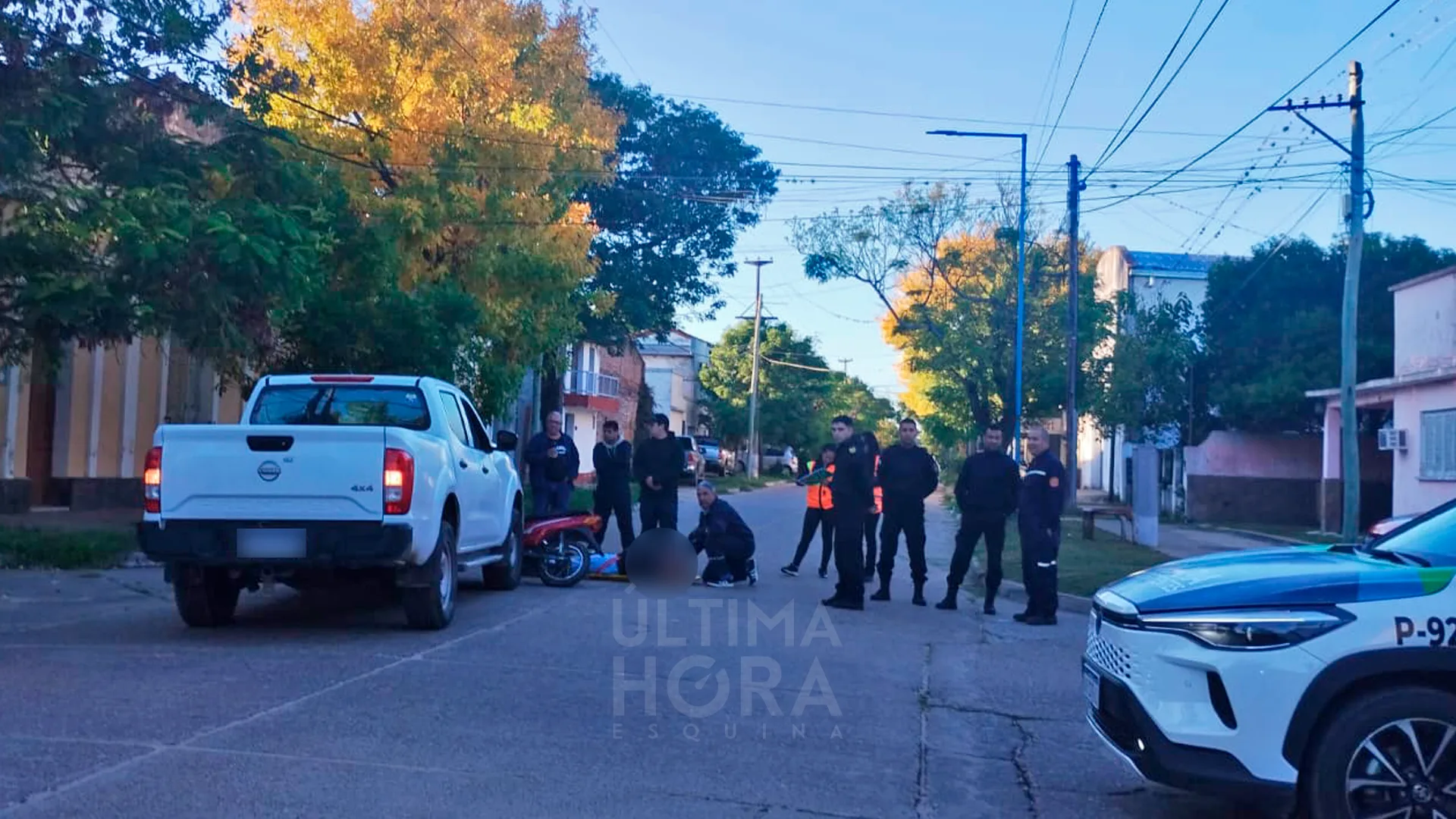 Un accidente de tránsito se registró este jueves por la mañana en Esquina, en la intersección de avenida 25 de Mayo y calle Reconquista. El siniestro ocurrió pasadas las 08:00 horas y dejó como saldo a una joven herida que debió ser trasladada al hospital local.
