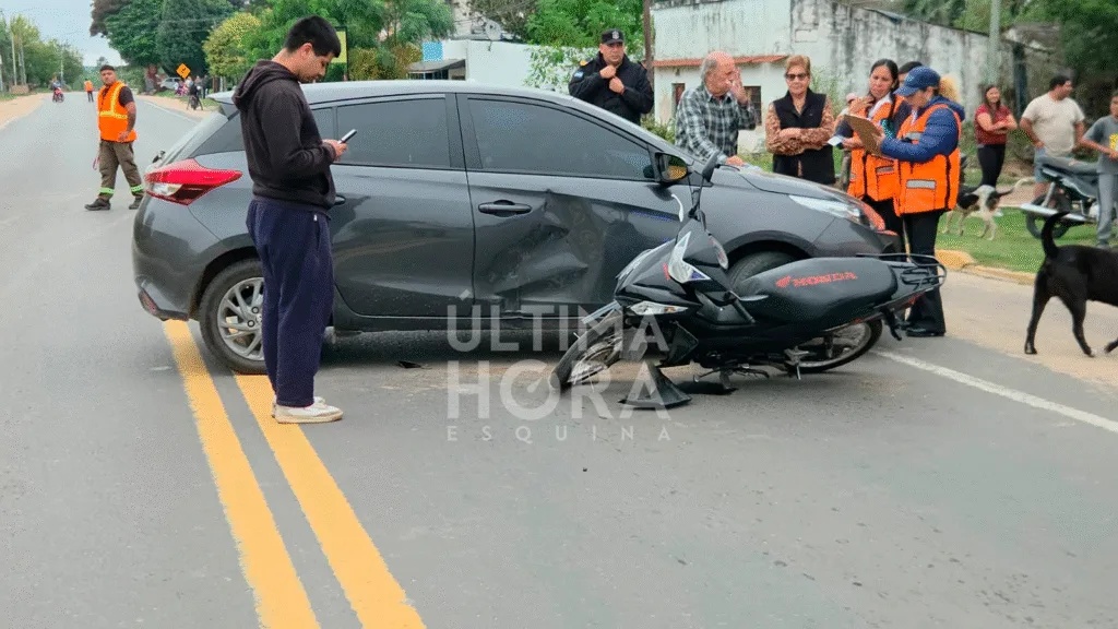 De acuerdo a la información recabada, el hecho se produjo cuando un automóvil Toyota Yaris, conducido por un hombre mayor de edad, salía de un garaje y fue impactado por una motocicleta Honda Wave 110.