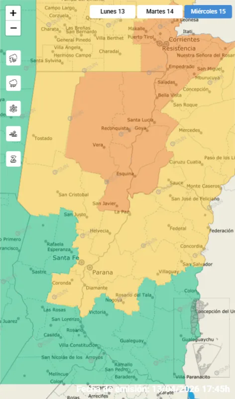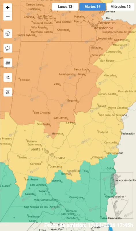 El Servicio Meteorológico Nacional emitió un alerta naranja por tormentas fuertes para Esquina, con condiciones inestables que comenzarán en la madrugada de este martes y se extenderán durante gran parte de la jornada. Se esperan lluvias intensas, actividad eléctrica y ráfagas de viento.