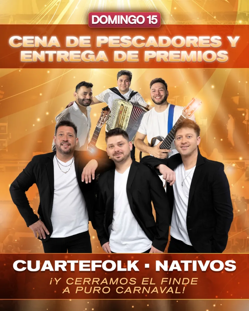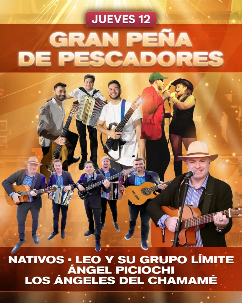 La apertura musical será el jueves 12 de febrero, con la tradicional Gran Peña de Pescadores, una noche pensada para el reencuentro y la camaradería. Sobre el escenario se presentarán: