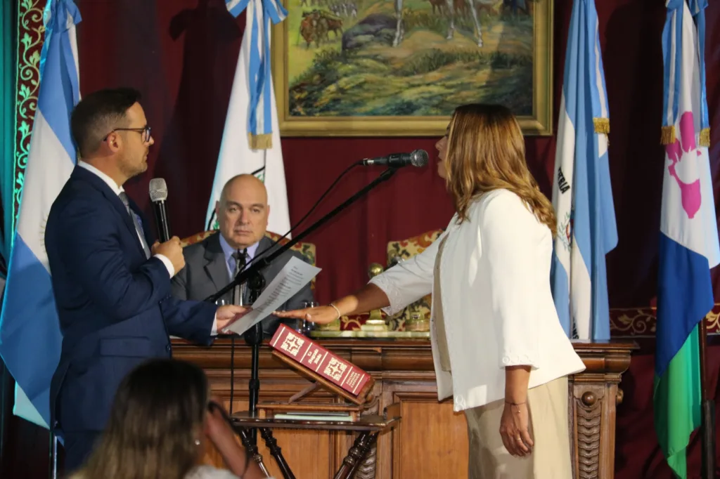 Durante el acto protocolar, el contador Cristian Olivetti asumió formalmente como intendente municipal, acompañado por Ángel Piciochi, quien tomó juramento como viceintendente. Ambos destacaron la importancia del acompañamiento ciudadano y la responsabilidad que implica iniciar una nueva etapa institucional en Esquina.
