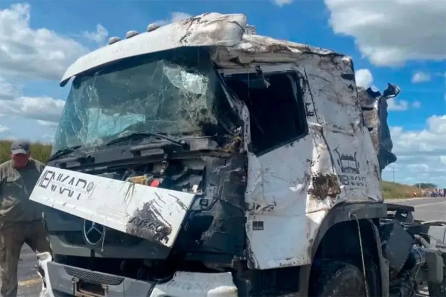 Tras la colisión, la camioneta terminó detenida sobre la banquina, mientras que el camión quedó a pocos metros del lugar donde se produjo el choque.