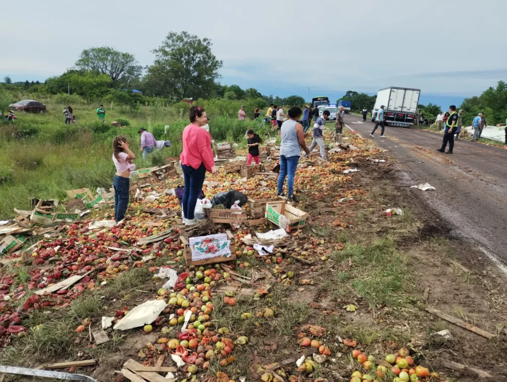 El vehículo transportaba una importante carga de verduras frescas, parte de la cual quedó esparcida sobre la calzada y fue levantada por vecinos que se acercaron al lugar.