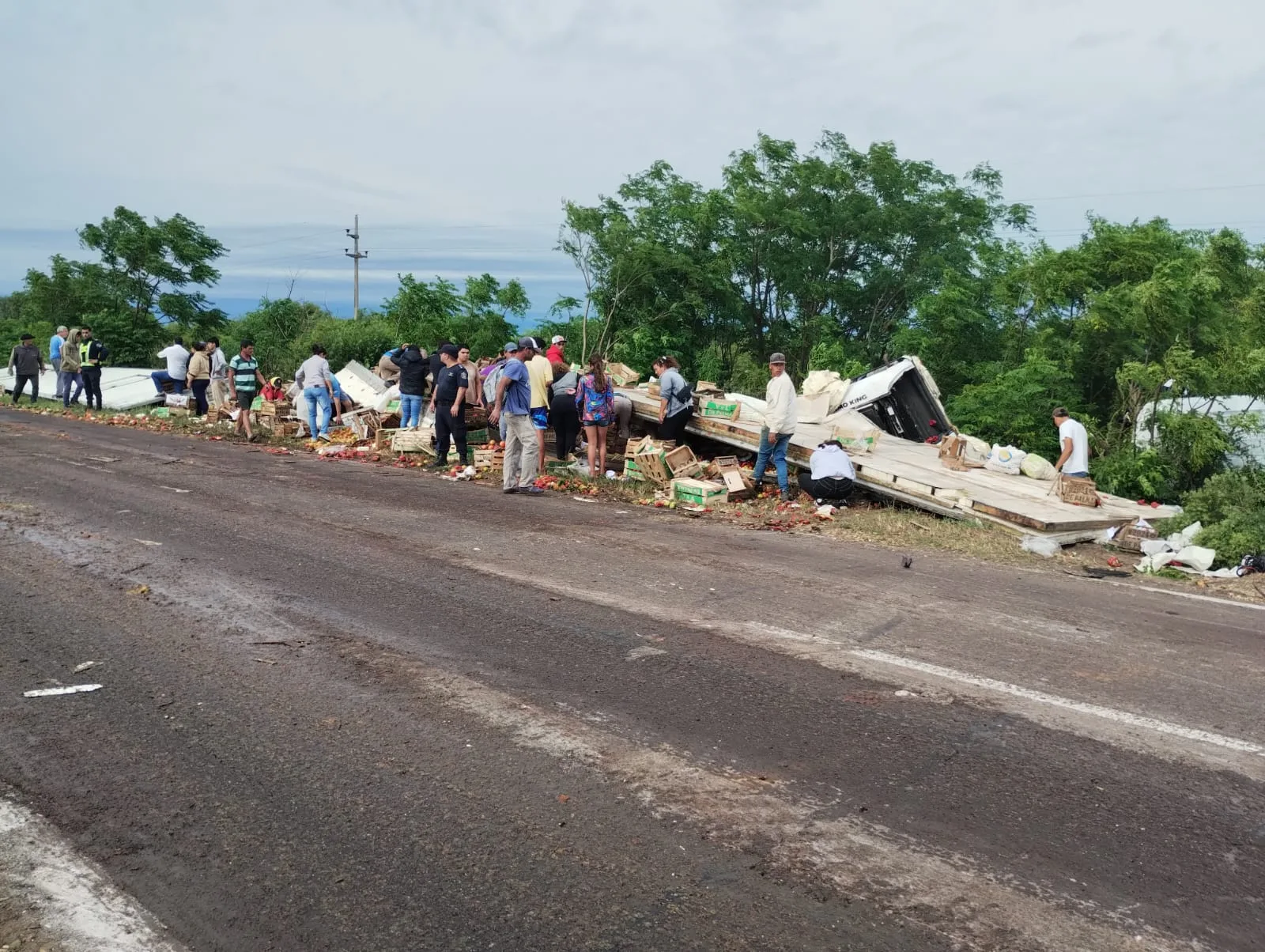 El accidente se registró alrededor de las 3:00 de la madrugada, cuando el camión Mercedes-Benz, conducido por un hombre de apellido López, oriundo de Rosario, perdió el control y despistó hacia la banquina, provocando el vuelco.