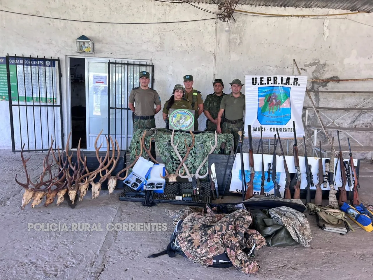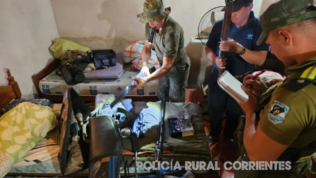 Un operativo realizado en el interior de Corrientes permitió desarticular una base utilizada por cazadores furtivos que operaban en zonas rurales. Durante el procedimiento, las autoridades secuestraron fusiles, escopetas, equipamiento táctico y trofeos de fauna silvestre protegida, elementos que evidenciarían la actividad ilegal en la zona.