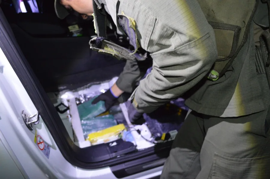 Al levantar la alfombra debajo del asiento y retirar una tapa metálica, detectaron un doble fondo donde se ocultaban 93 paquetes rectangulares de cocaína.