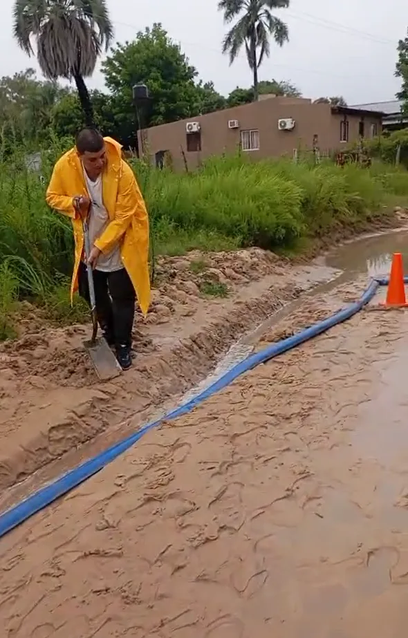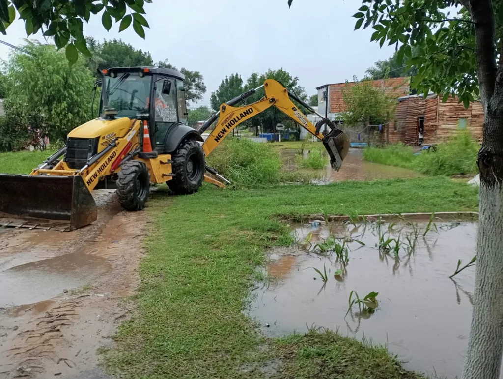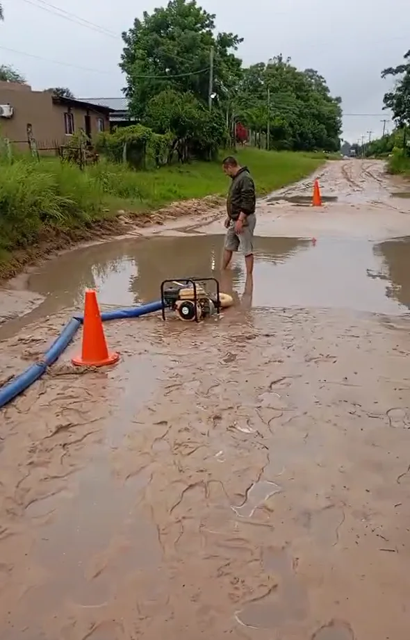 En estos momentos, personal municipal se encuentra trabajando al fondo de lo que sería la continuación de la Calle Mitre, donde se formó un pozo con importante acumulación de agua. Las tareas se concentran en el desagote de la calle, con el objetivo de evitar mayores complicaciones y posibles anegamientos en viviendas cercanas.