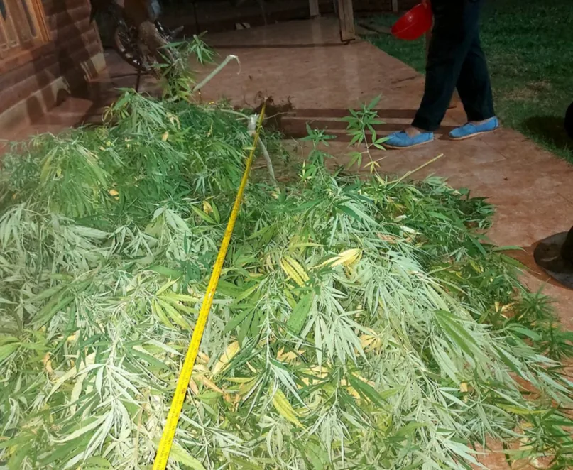 En uno de los allanamientos, los policías también encontraron una planta de marihuana de aproximadamente 2,65 metros de altura.