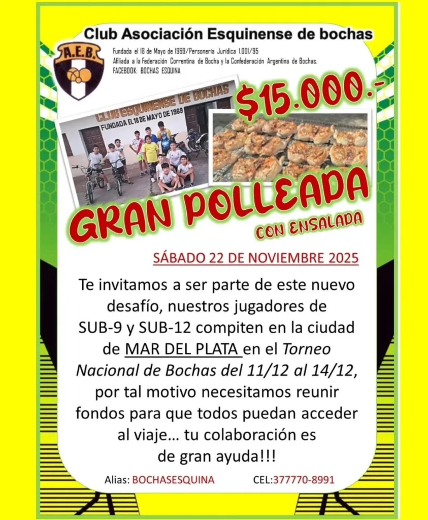 La comunidad de Esquina tiene una nueva oportunidad para apoyar a las futuras promesas de las bochas en este importante paso a nivel nacional.