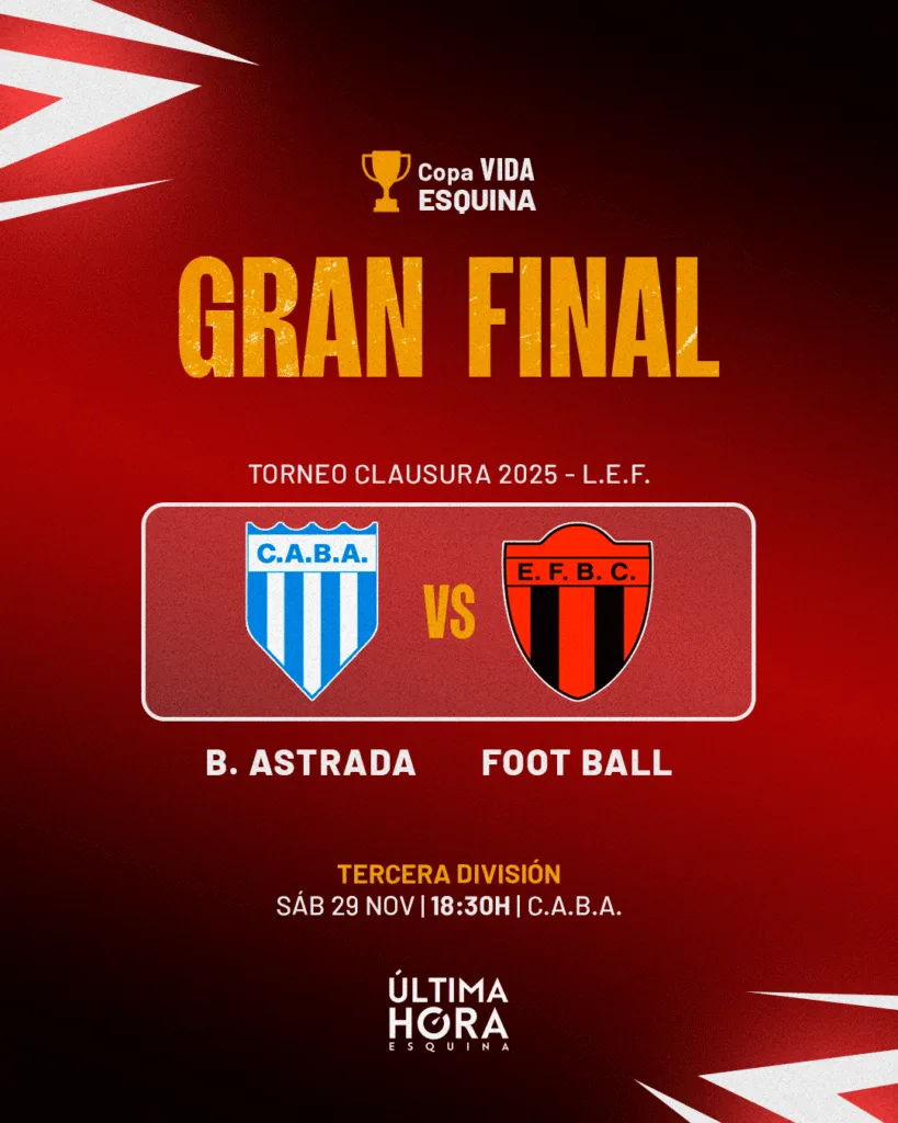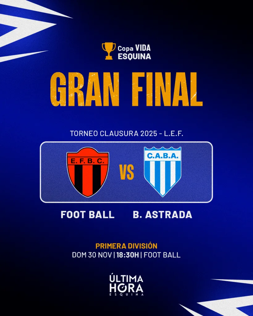 La Liga Esquinense de Fútbol confirmó el cronograma oficial para los primeros cruces definitorios de la Copa Vida Esquina. Este fin de semana se dará inicio a las finales de ida, tanto en Primera como en Tercera División, que enfrentarán a los clubes Foot Ball y Berón de Astrada en un duelo doble por la gloria.