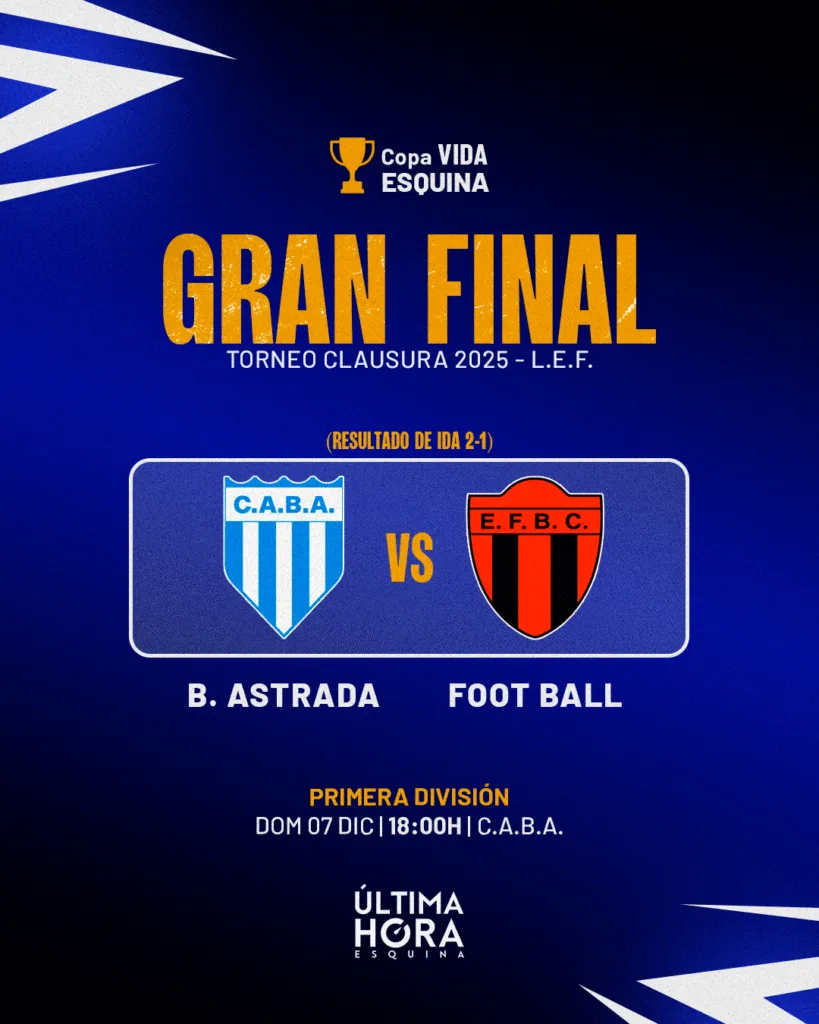 Foot Ball, por su parte, buscará revertir el marcador y alcanzar el bicampeonato, lo que agrega un condimento especial a una final que promete gran convocatoria y un clima competitivo intenso.