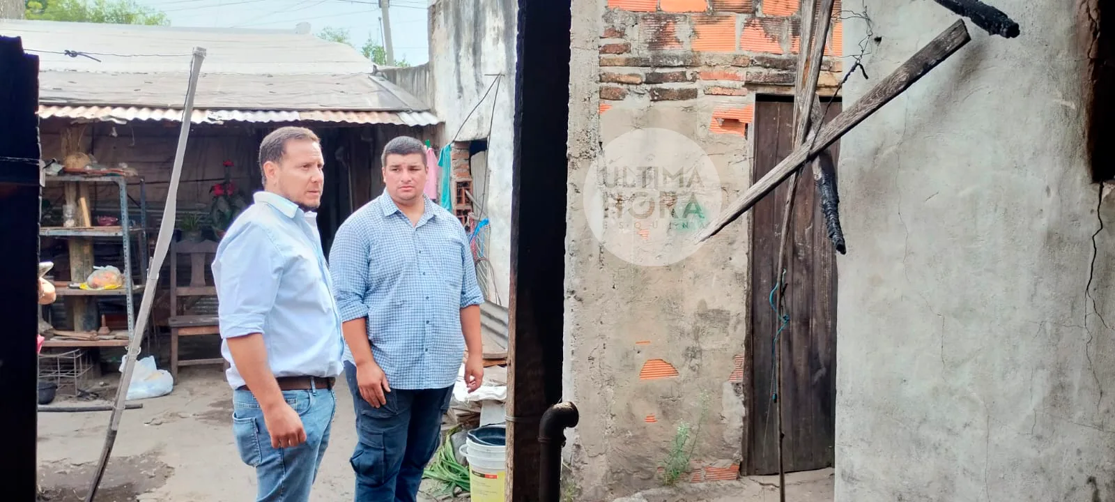Posteriormente, se realizó una evaluación técnica del estado de la vivienda junto al secretario de Obras Públicas, Hernán Galvaliz, donde se determinó que las paredes y las chapas se encuentran en muy mal estado, imposibilitando cualquier tipo de reutilización.