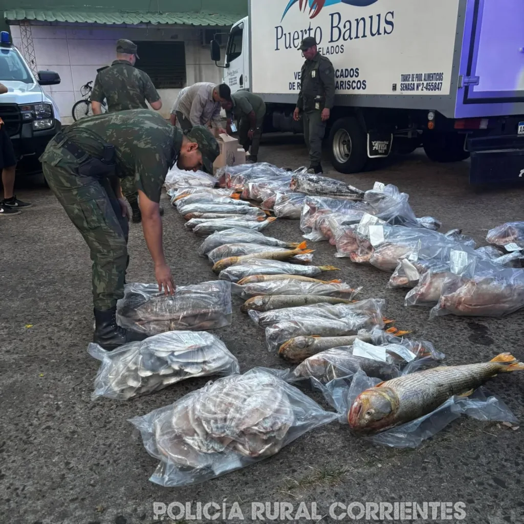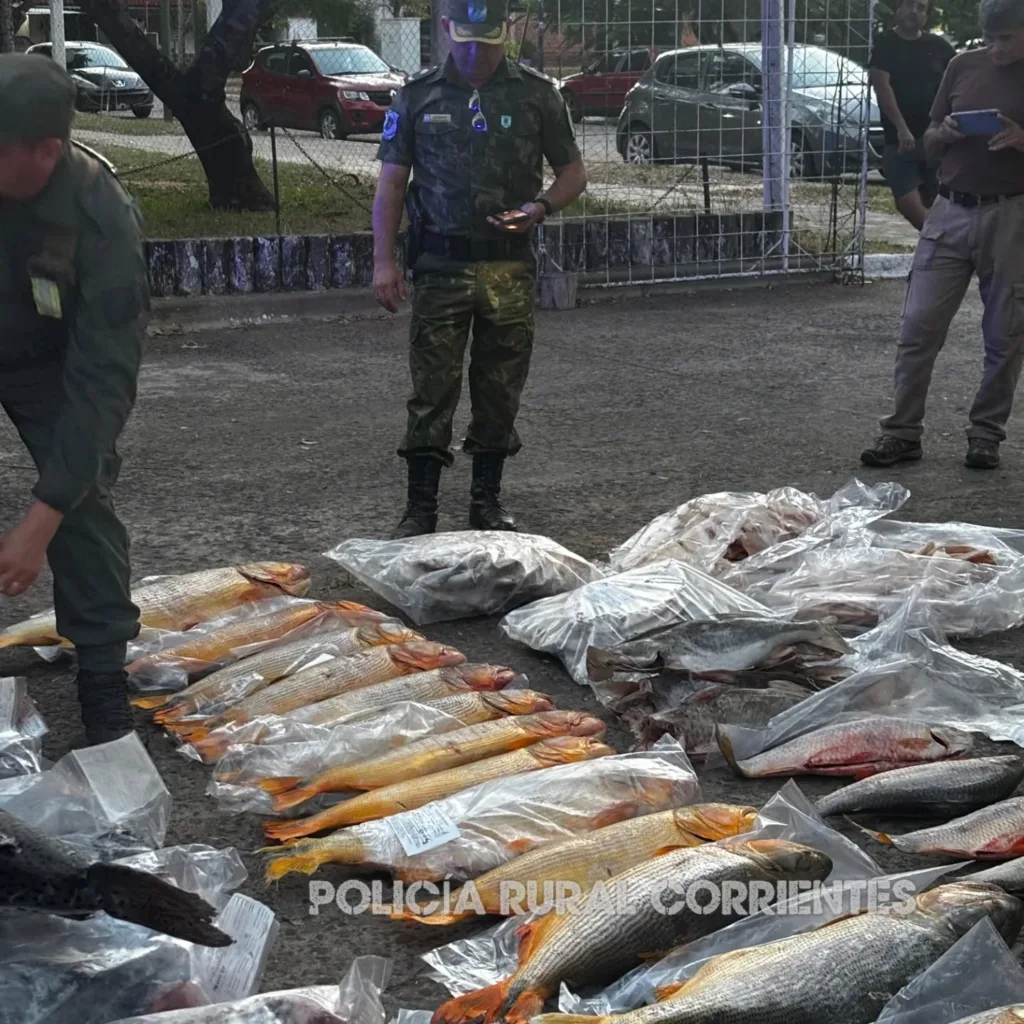 Un operativo conjunto realizado en Ituzaingó permitió el secuestro de cerca de 720 kilos de pescado, incluyendo dorados y surubíes, especies cuya comercialización está prohibida. El procedimiento fue llevado adelante por la Gendarmería Nacional Argentina, la Policía Rural y personal de Dirección de Recursos Naturales de Corrientes.