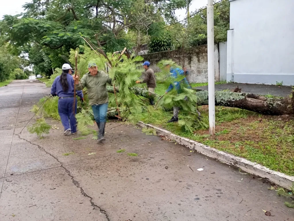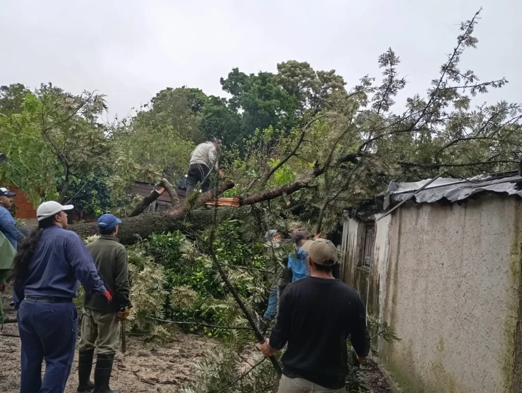 Las cuadrillas municipales y equipos de emergencia avanzan con tareas de asistencia a vecinos, limpieza de sectores afectados y corte de árboles que cayeron tanto sobre la vía pública como en algunas viviendas.