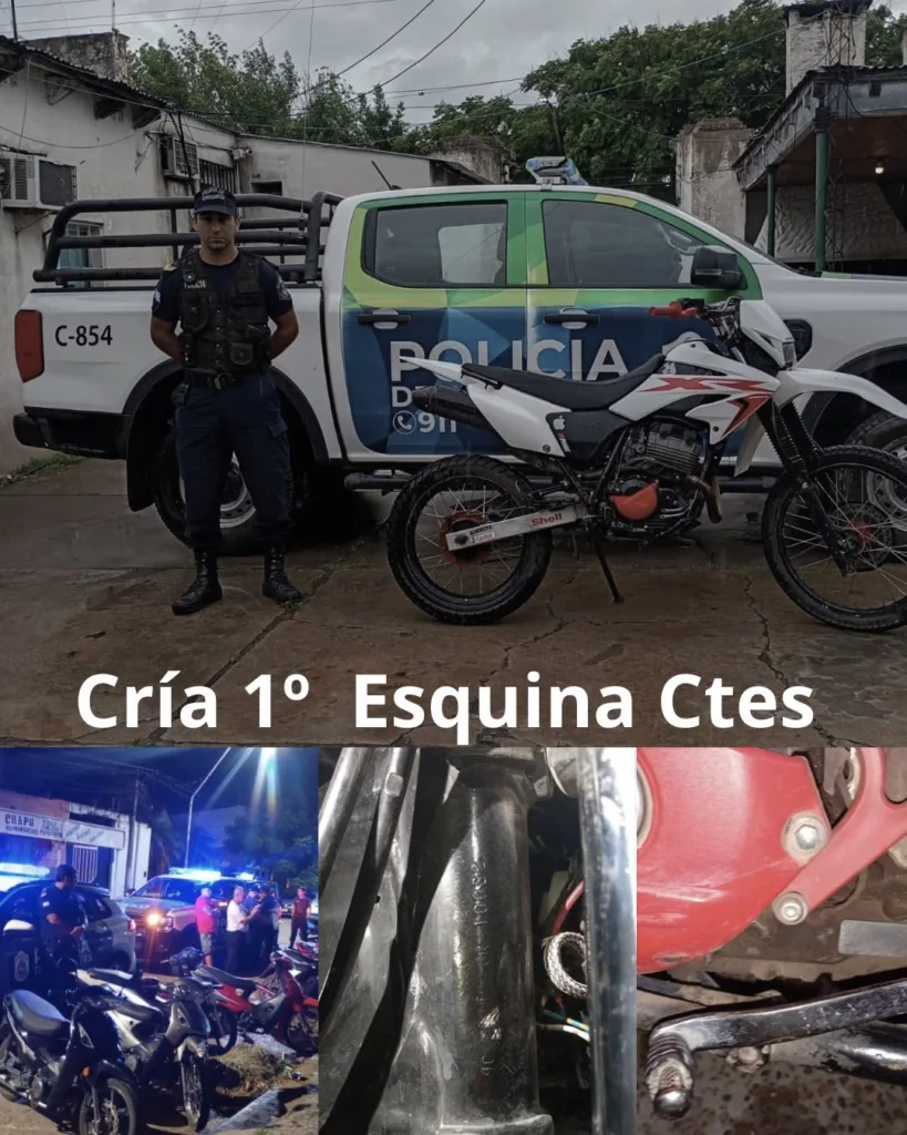 Además, los agentes incautaron una motocicleta Honda Tornado 250 cc, la cual carecía de documentación y presentaba el motor adulterado, por lo que fue puesta a disposición de la Justicia para las actuaciones correspondientes.