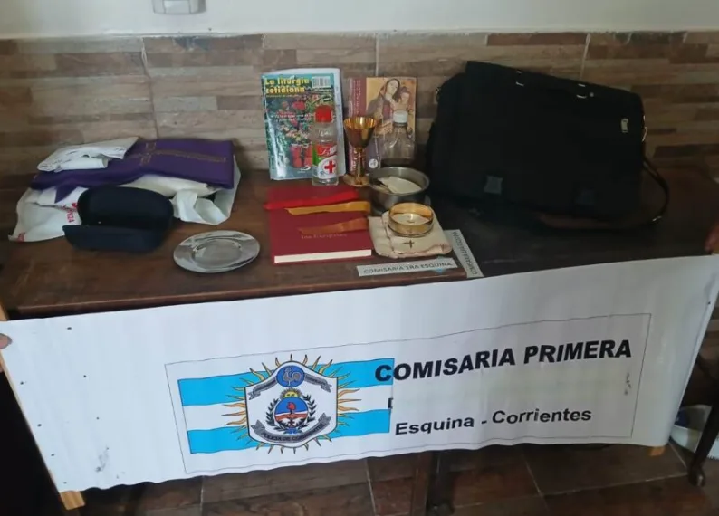 La Policía de Corrientes logró recuperar objetos litúrgicos robados de la Parroquia Santa Rita, ubicada en la esquina de calle Santa Rita y avenida 25 de Mayo, en Esquina.