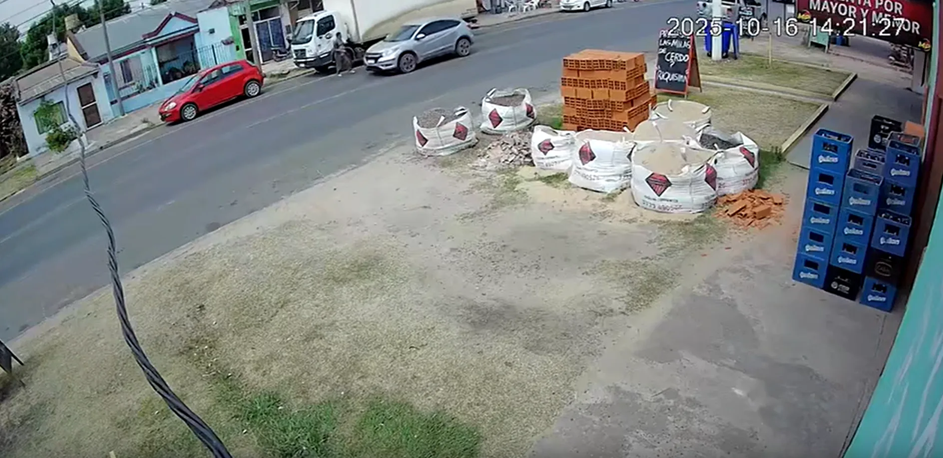 La secuencia completa fue registrada por las cámaras de un comercio cercano, lo que constituye un elemento clave en la investigación policial. En las imágenes puede verse el momento exacto en que el sospechoso sube al camión y luego desciende para escapar junto a su cómplice.