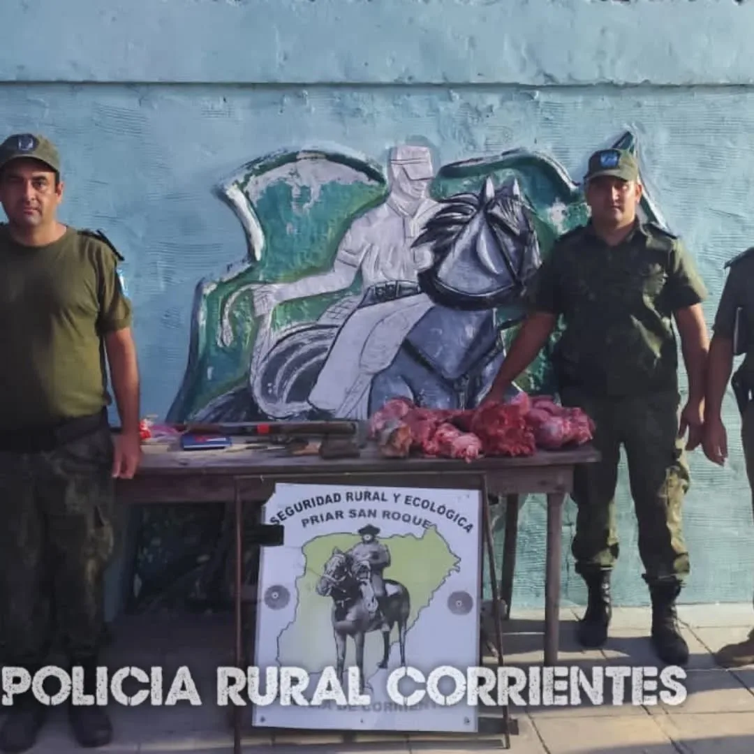 Un procedimiento de la Policía Rural y Ecológica de San Roque permitió esclarecer un hecho de abigeato denunciado por un productor rural del Paraje Rosado, donde se detectó la faena ilegal de una vaquillona. Tras una investigación y varios allanamientos, la fuerza secuestró carne bovina, armas de fuego y elementos utilizados para la faena clandestina.