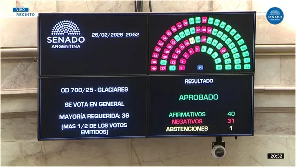 En una votación ajustada y tras un intenso debate político, el Senado de la Nación aprobó modificaciones a la Ley de Glaciares, una normativa clave para la protección de reservas estratégicas de agua dulce en Argentina. El proyecto impulsado por el Gobierno nacional obtuvo 40 votos afirmativos y 31 negativos, y ahora deberá ser tratado por la Cámara de Diputados.