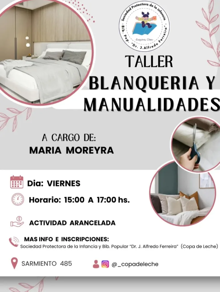 - Taller de blanquería y manualidades, a cargo de María Moreyra
