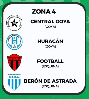 En este contexto, se confirmó que los equipos de Esquina Foot Ball Club y Berón de Astrada integrarán la Zona 4, donde deberán medirse ante clubes de gran trayectoria.