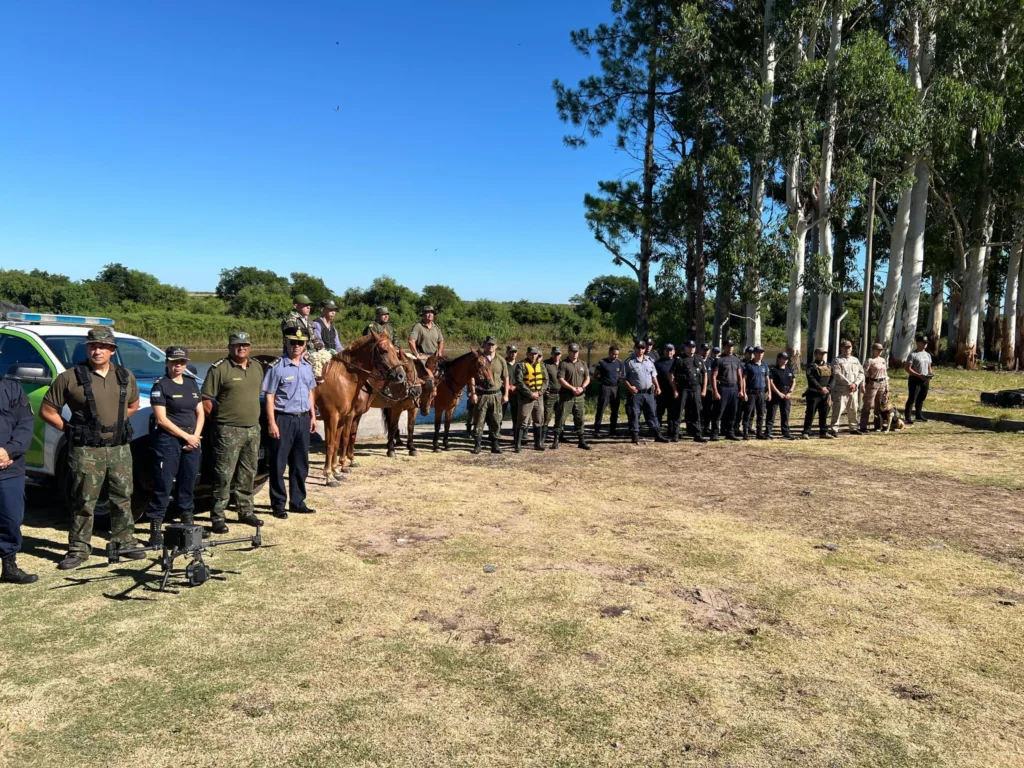 En el procedimiento participaron efectivos de distintas localidades, entre ellas Esquina, Goya y Bella Vista, además de divisiones especiales como Caballería, Drones y Canes, que trabajaron en sectores de difícil acceso.