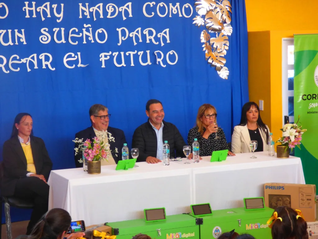Valdés inauguró el edificio del JIN N°53 en la Escuela N°279, resaltando la relevancia del nivel inicial como “la primera contención para los niños” dentro de la educación pública. Durante el acto, entregó 64 tablets a los alumnos como parte del programa provincial Mitaí Digital, orientado a reducir la brecha tecnológica.