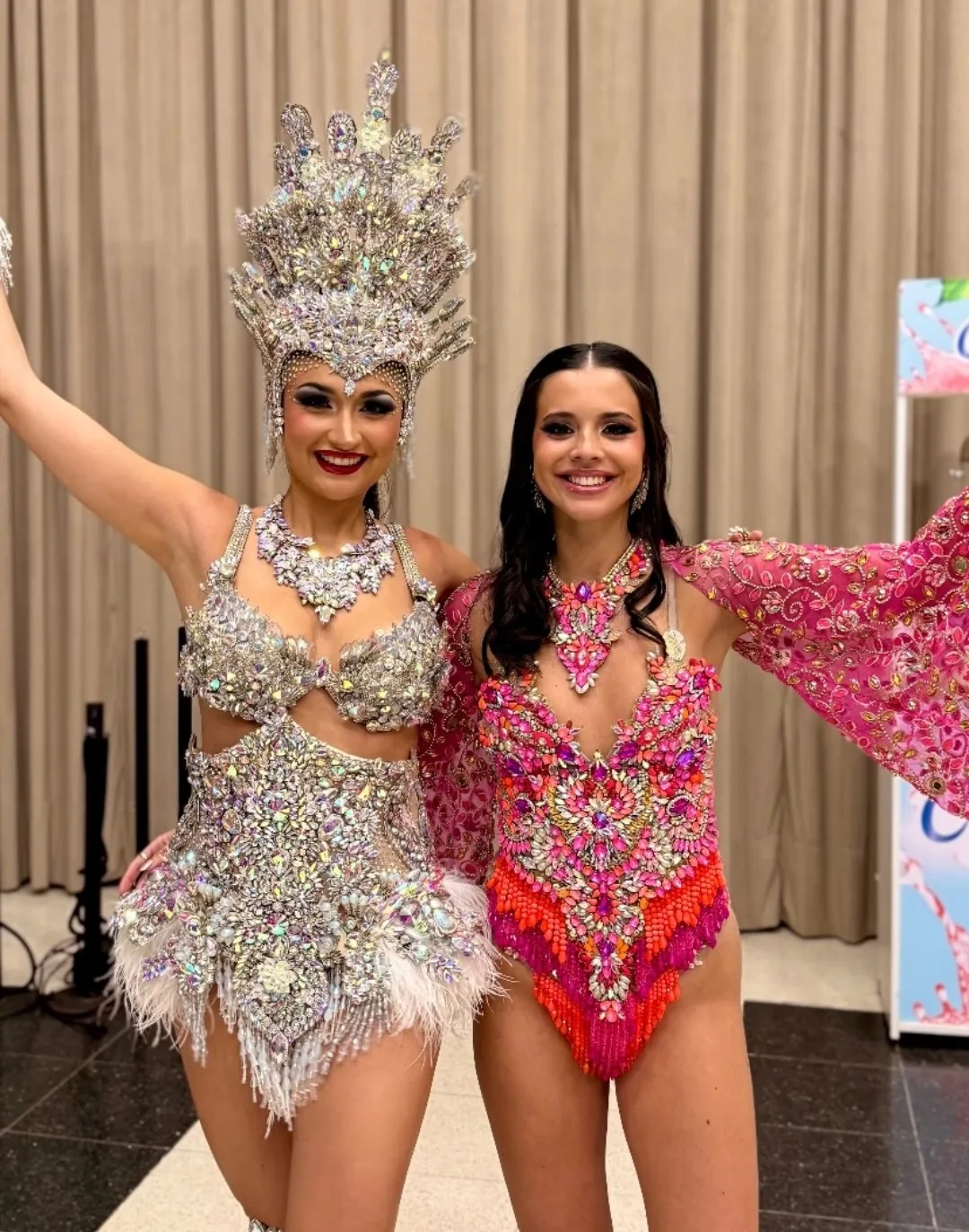 Las representantes María Inés Olivetti y Valentina Urquiza Lobo fueron las encargadas de defender los colores de la comparsa esquinense, sobresaliendo en la pasada de candidatos gracias a su presencia escénica, vestuario y carisma frente al jurado y el público presente.